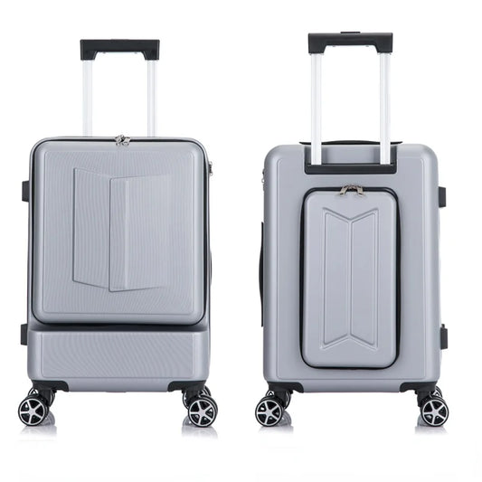 20 inch PC carry on travel suitcase multi-function boarding Front opening trolley case