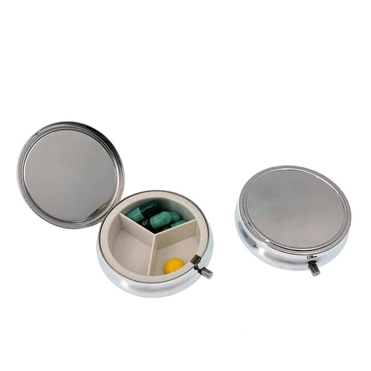 3 Cell Metal Pill Boxes Stainless Steel Round Pill Box