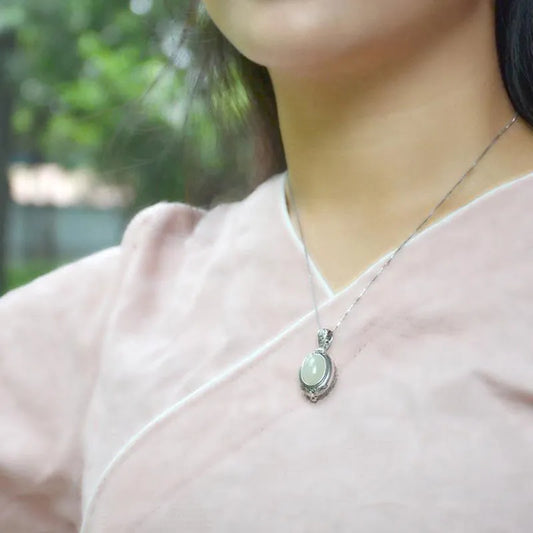 Retro Inlaid With Jade Pendant Aromatherapy Pendant Locket Necklace Pill box