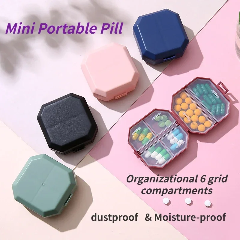 Mini Portable Pill Organizer 6 Grid Compartment Travel Pillbox Nordic Style Dispenser Medicine Boxes Dispensing Medical Kit